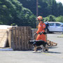 2, 土砂災害の瓦礫の中の要救助者(被災者)を救助犬が捜索し救助隊が救出する訓練です。要救助者がいるのかいないのか、いるとすればどこにいるのか、だれも知らない状態で災害時に近い条件で救出活動を行う見学者のいない中での完全ブラインド訓練です。福島県と災害時救助犬の出動協定を締結している3団体が連携し1救助犬チームとして活動する訓練を兼ねています。JKC/DRDN/SDFの救助犬4頭とハンドラー/現場管理・救助犬隊長の6名が参加しました。