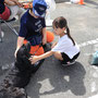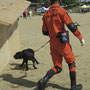 同時に、救助犬試験を控えたトレーニング中の若い救助犬をヘリコプターの騒音と風圧に慣らす馴致訓練も並行して行いました。