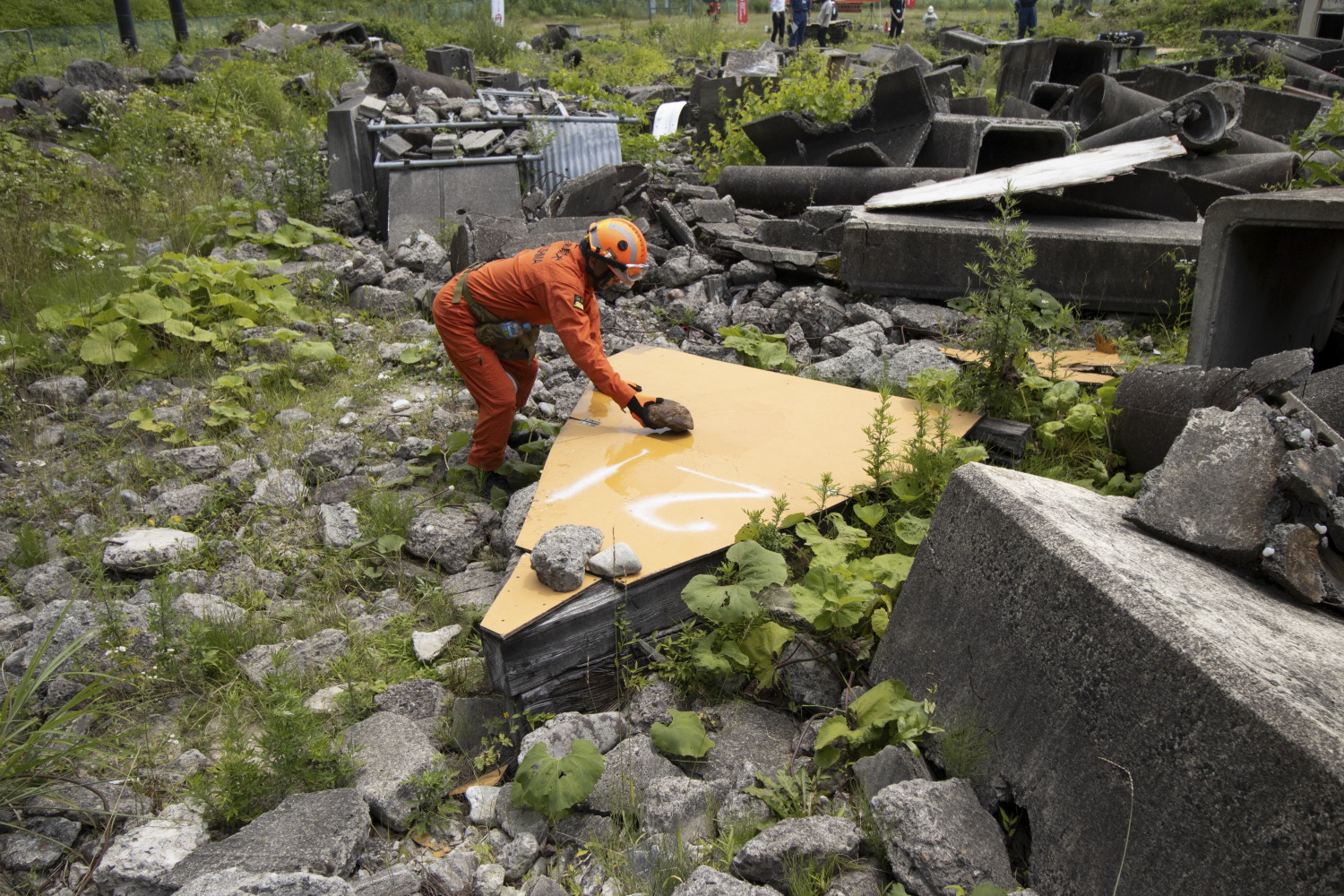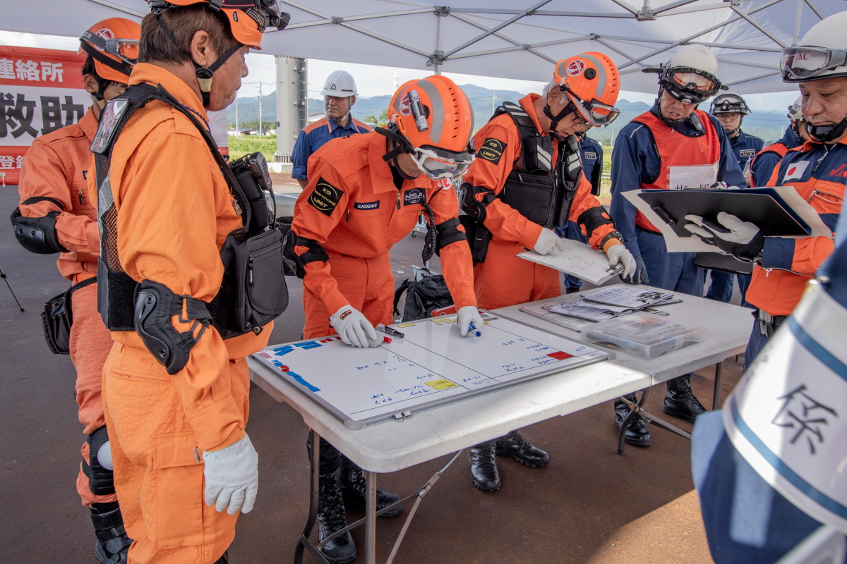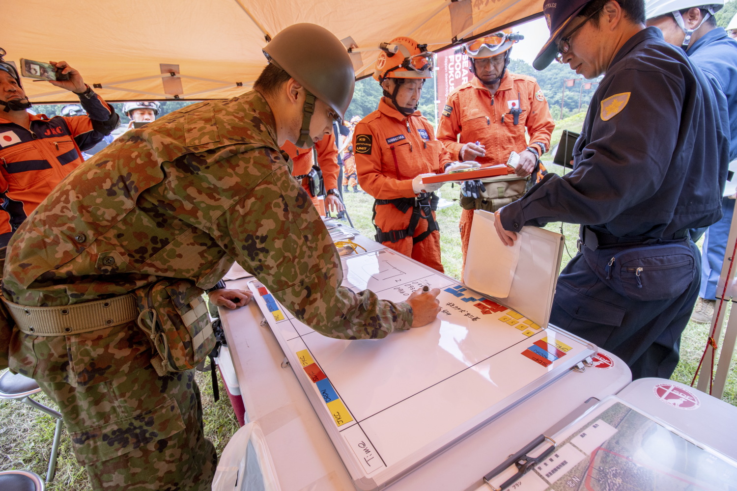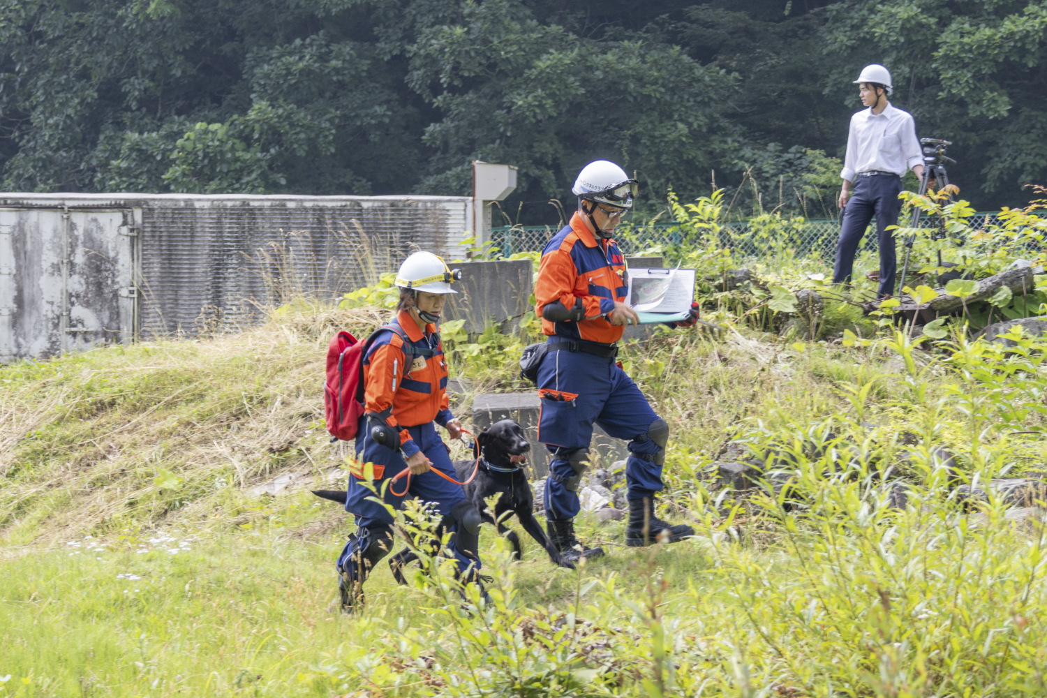 土砂崩れが発生し、ブラインドで捜索救助する連携訓練