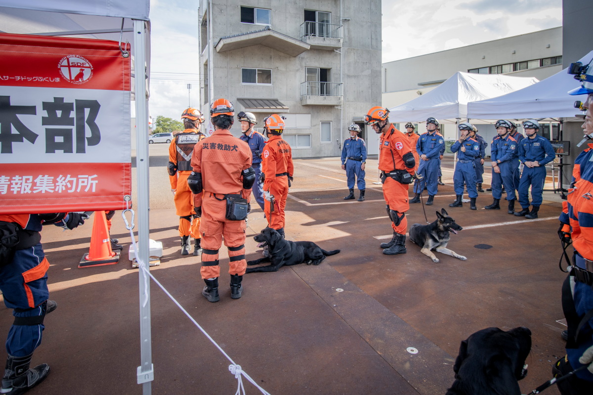 令和6年福島県総合防災訓練は伊達市で行われました。SDF サーチドッグふくしまは3つの訓練に参加。
