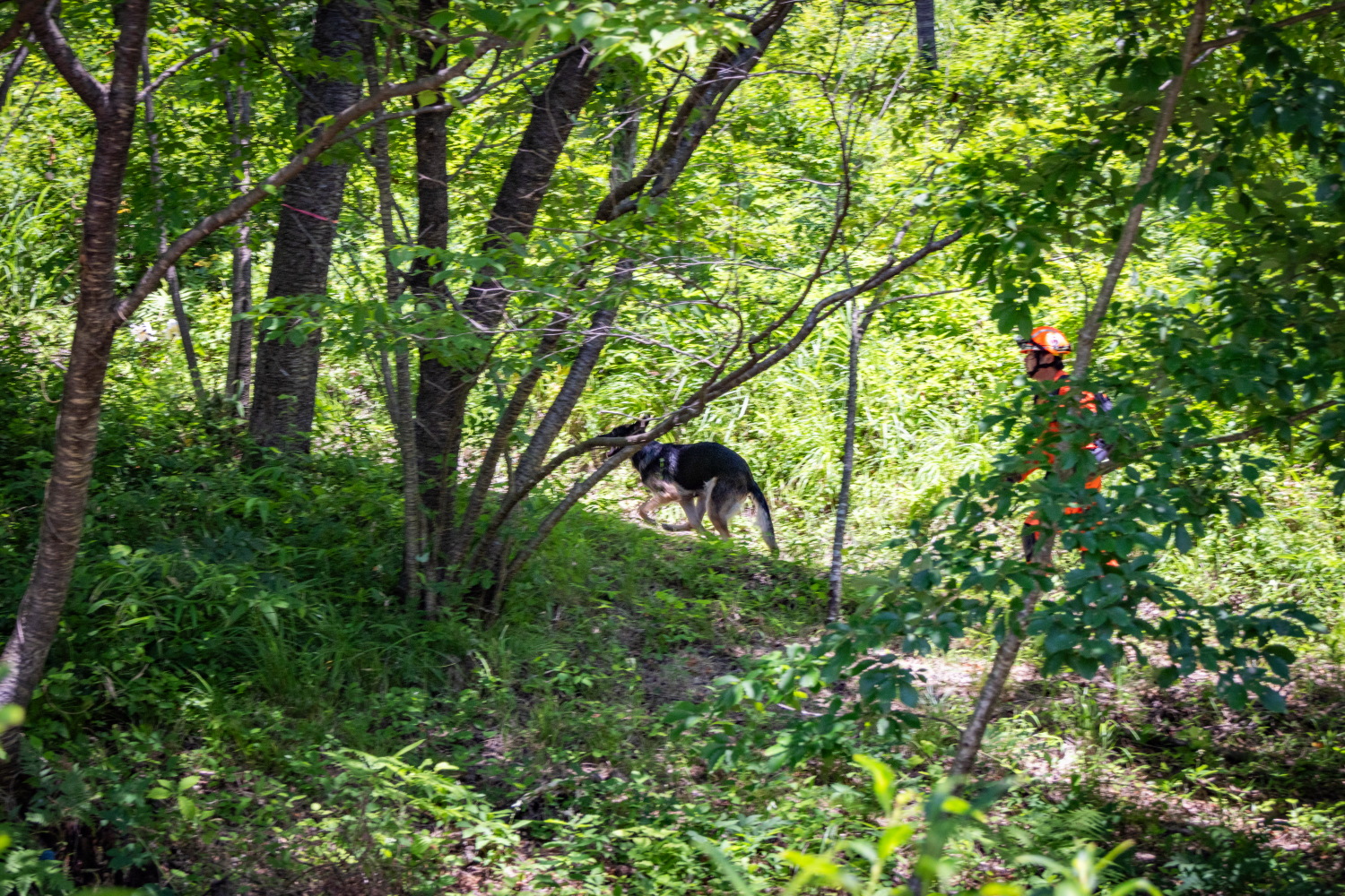 認定災害救助犬の年3回以上の参加義務のある定期訓練会を行い、山野搜索と、救助犬の暑さ対策講習を行いました。